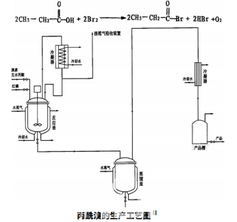 丙酰溴由無水丙酸在紅磷( 赤磷) 存在下與溴反應(yīng)而得。 其反應(yīng)式如下: